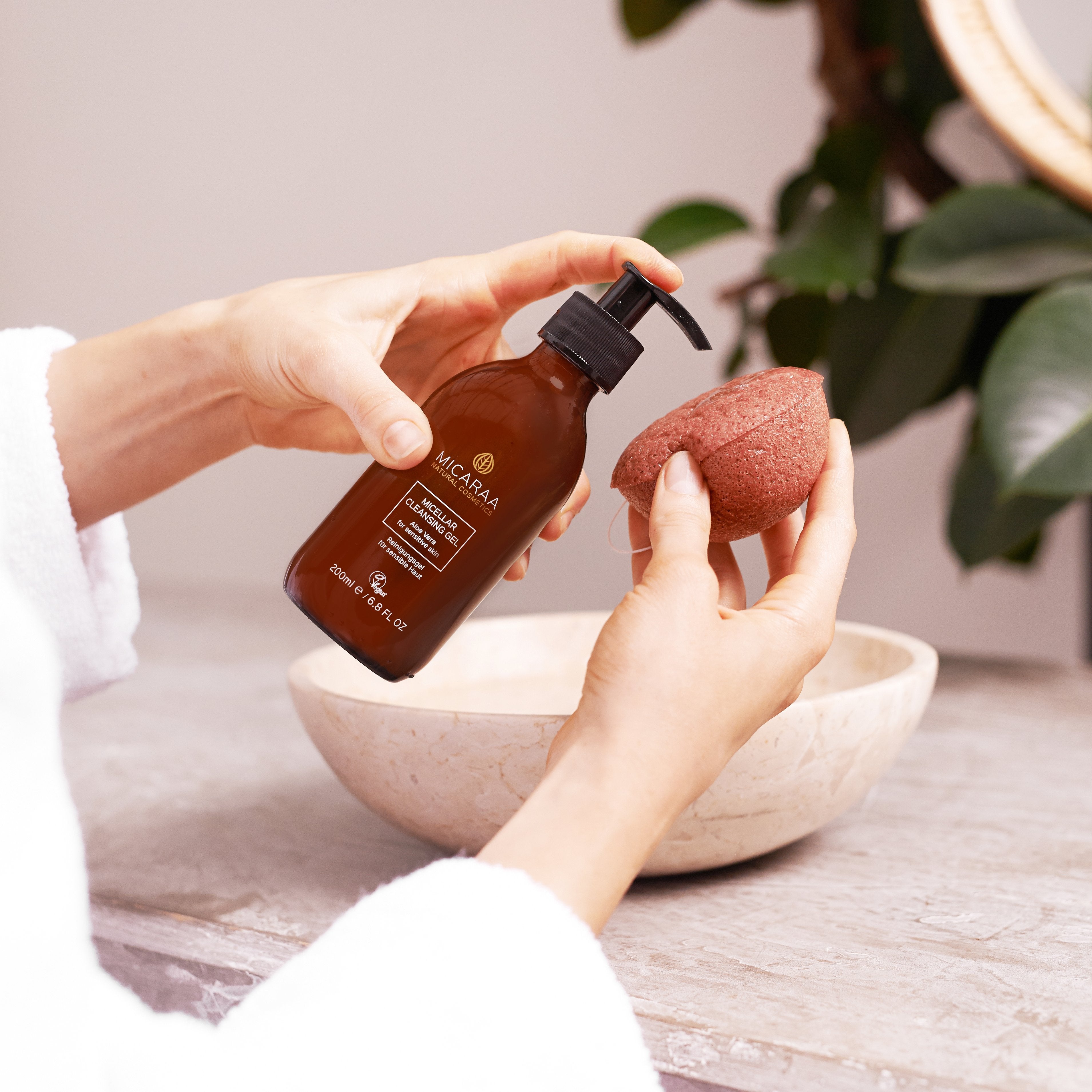 Die perfekte Kombination für eine porentiefe Reinigung - das Mizellen Reinigungsgel auf Aloe Vera Basis und der Zero Waste Konjak Schwamm für deinen Hauttyp sorgen für einen strahlenden Teint. Wähle den roten Schwamm bei sensibler Haut und den schwarzen Schwamm bei öliger Haut.