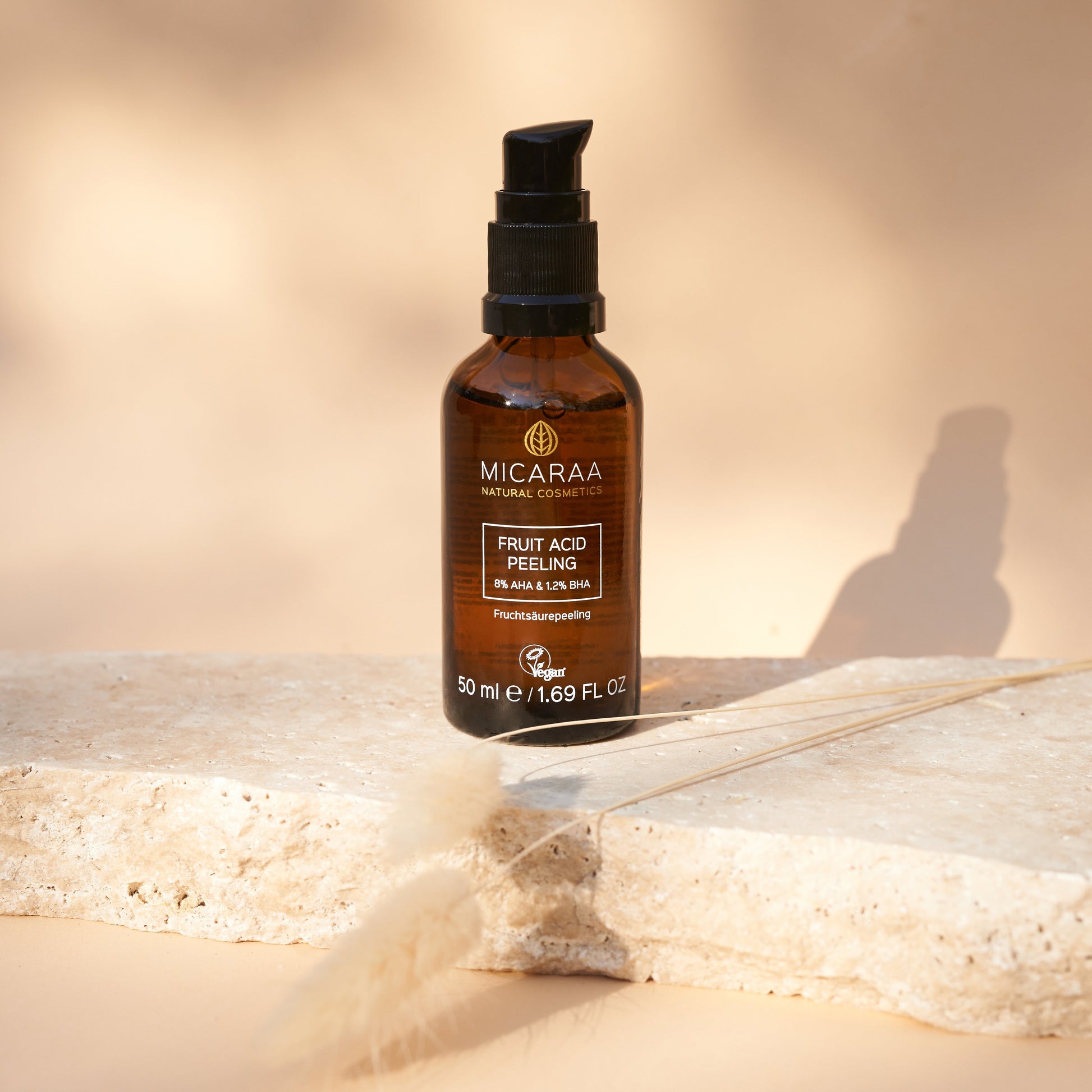 Reinigt, glättet und erneuert: Unser AHA-Peeling mit 8% AHA und 1,2% BHA Fruchtsäure. Das Peeling entfernt sanft abgelagerten Talg, Schmutz und Hautschuppen, sodass deine Poren wieder frei sind. Hautunreinheiten und Unebenheiten werden so verringert.