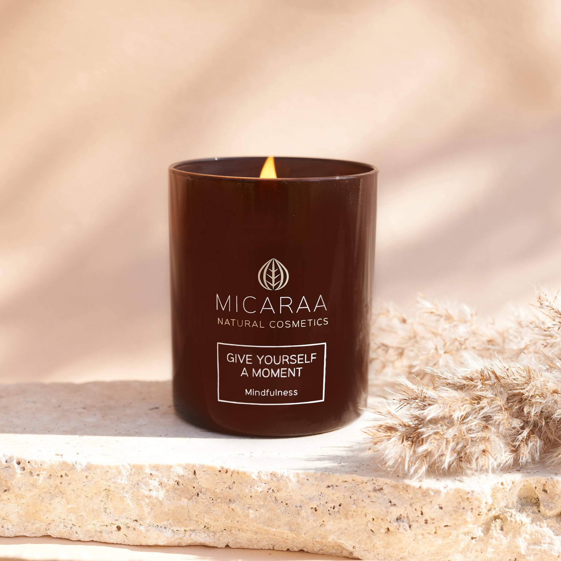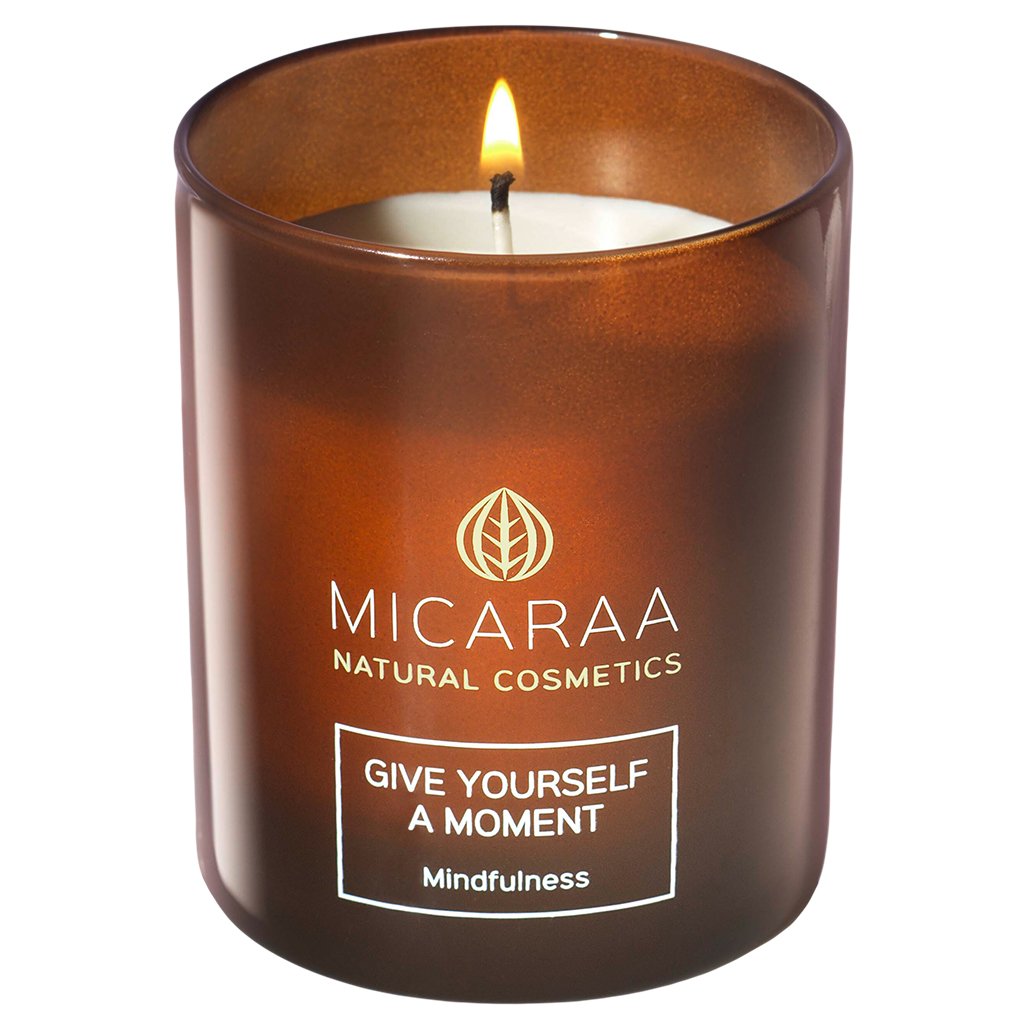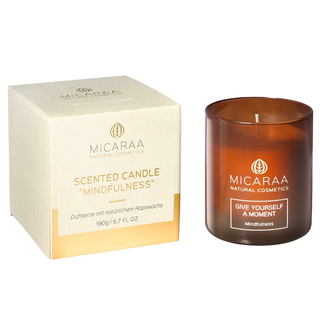 Die MICARAA Duftkerze "Mindfulness" aus natürlichem Rapswachs lenkt das Bewusstsein auf den gegenwärtigen Moment, entschleunigt und fördert Achtsamkeit - für einen Moment der Ruhe und ein Gefühl von Wohlbefinden.