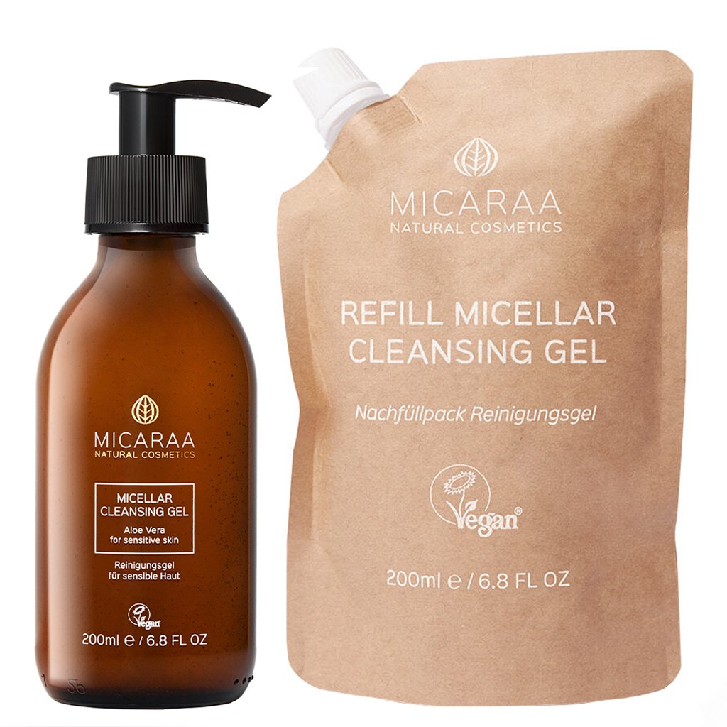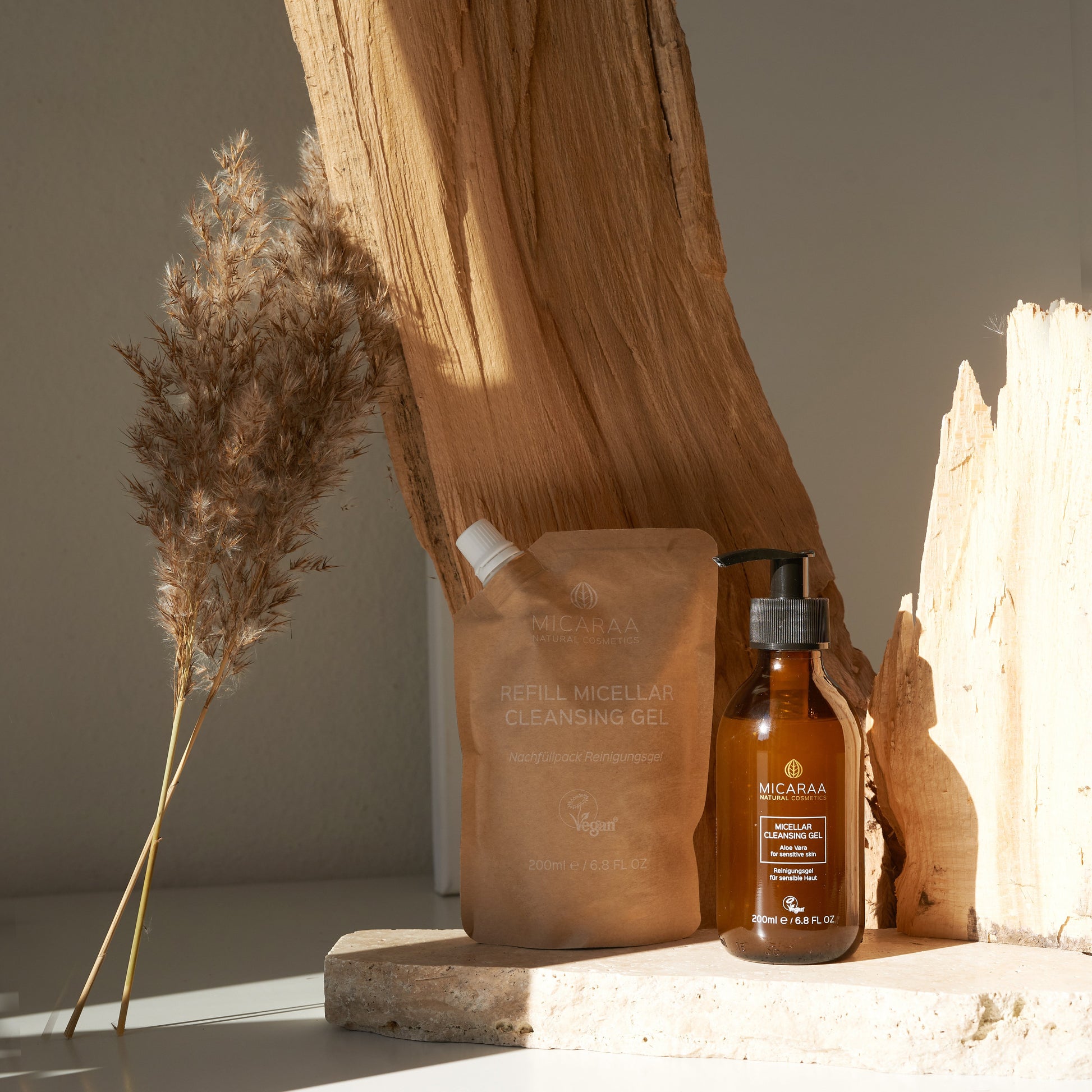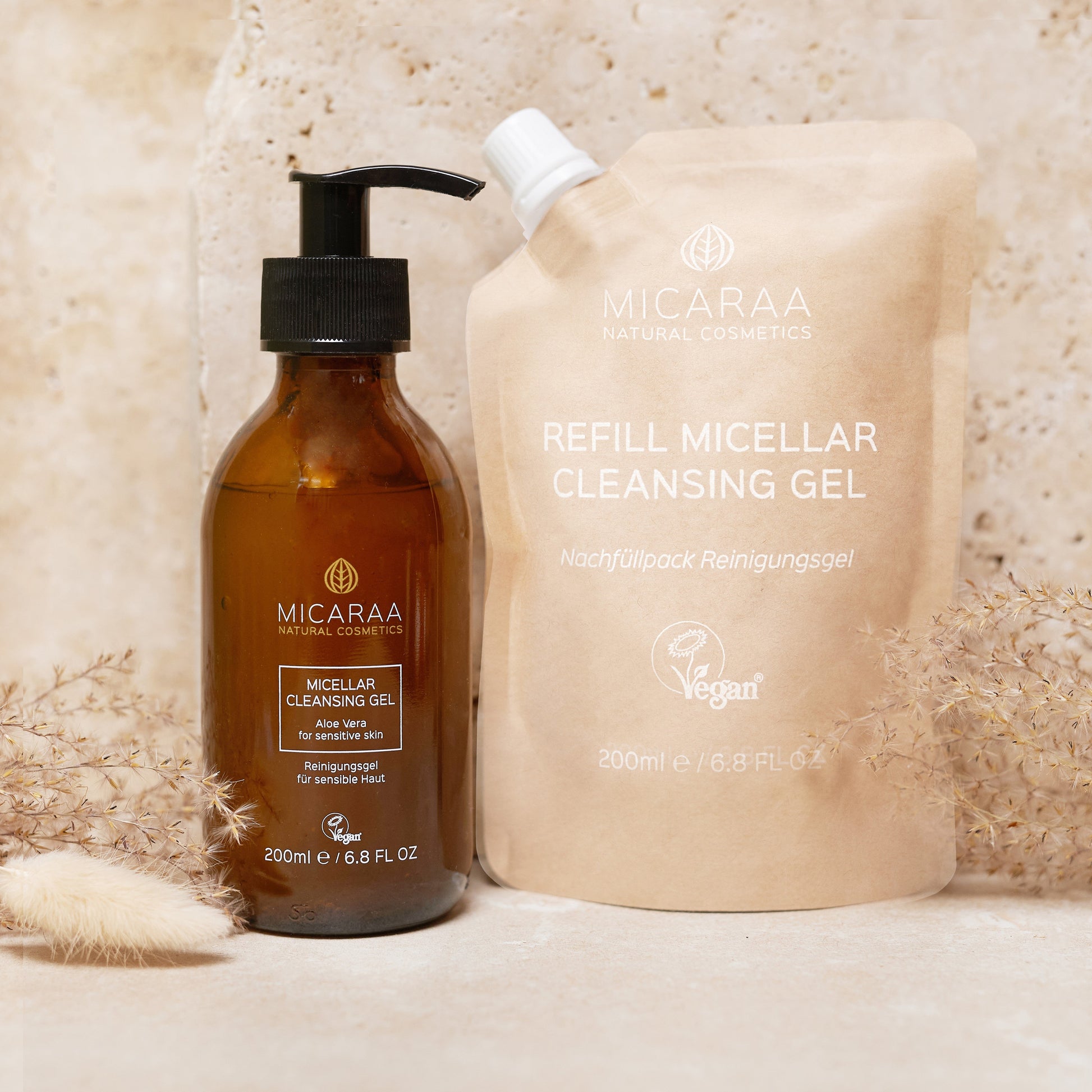 Die perfekte Kombination für reinere Haut. Das Mizellen Reinigungsgel und das nachhaltige Nachfüllpack ergänzen sich und befreien deine Haut von Talg und Verschmutzungen. Für ein geklärtes Hautbild ohne Spannungen oder Rötungen.